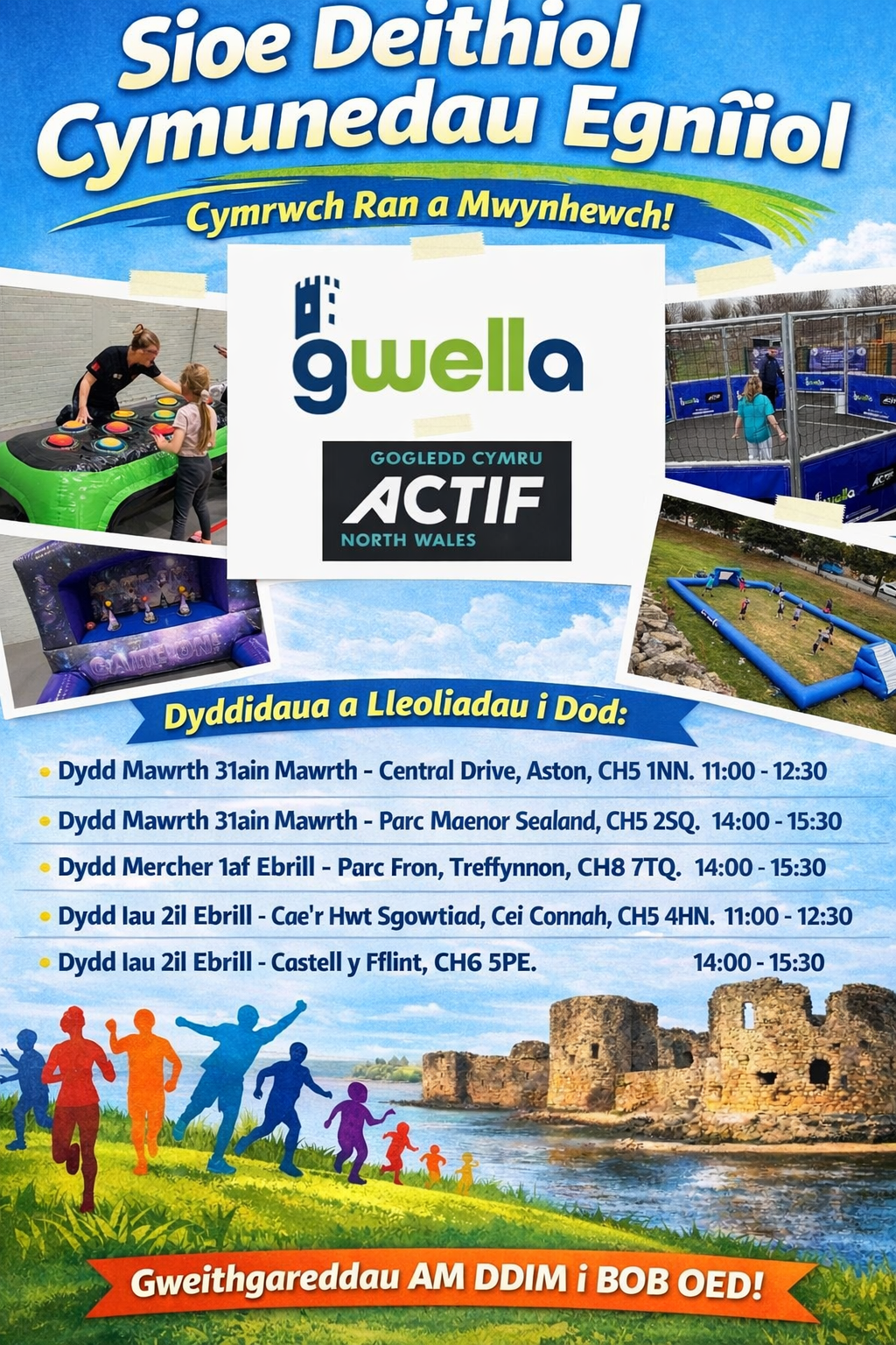 7th Ebrill Parc Chwyddadwy 6-16 oed Canolfan Hamdden Glannau Dyfrdwy 4:00yp - 5:00yp Trwy Ddolen Bookwhen